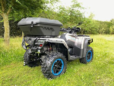 Despite being a road legal quad, the CFMOTO CFORCE 1000 isn’t afraid of a hard day at work either and a features a winch capable of pulling up to 1360kg of weight, perfect for yanking out tree stumps or other tasks. Heavy gauge steel tube storage racks allow for tying down heavier items for transportation with the storage rack at the back of this road legal quad being able to fit a top box, allowing for more storage when out on your new quad. A rear tow bar with 7 pin trailer socket allows for easily adding a trailer for hauling heavy loads with ease.