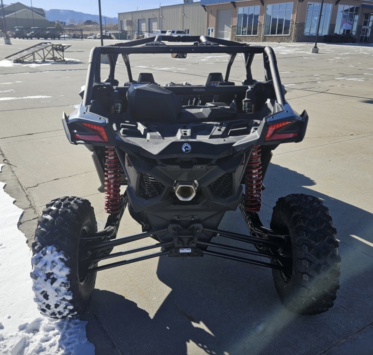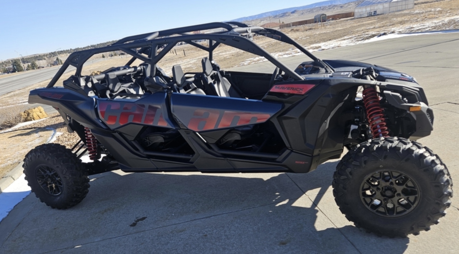 2026 CanAm  X3 Max RS. Turbo RR power, 30 in tires on aluminum wheels, rear piggy back shocks, front gas shocks and more. Engine Type: Horizontal In-line Displacement: 54.9 cu. in. (900 cc) Cooling: Liquid Fuel System: Gas Front Suspension: Double A-Arm Front Brakes: Dual Hydraulic Disc Front Tire: XPS Trac Force 30 x 10 x 14 Rear Suspension: Independent Rear Brakes: Dual Hydraulic Disc Rear Tire: XPS Trac Force 30 x 10 x 14 Dry Weight: 1967 lb. (891.9 kg.)